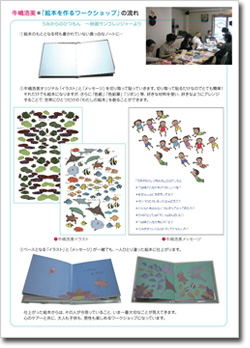 牛嶋浩美「絵本を作るワークショップ」 「心のケアープロジェクト」 ファーストピックでは、牛嶋浩美さんの「絵本を作るワークショップ」を全国で開催しております。ワークショプには、家族をテーマ―にしました「つながっているよ」、クリスマスをテーマにしました。「クリスマスのプレゼントにオリジナルの手作りの絵本を」他、いろいろございますので、ご相談下さい。