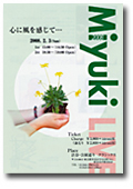 |   | 「MIYUKI LIVE 心に風を感じて・・・」 公演日:2008年2月3日(日) 1st 15:00〜(14:30 Open)、2st 18:30〜(18:00 Open) 出演:池田峰雪 ゲスト:古代真琴、泰輝 ←左の画像をクリックするとチラシをご覧いただけます。 |